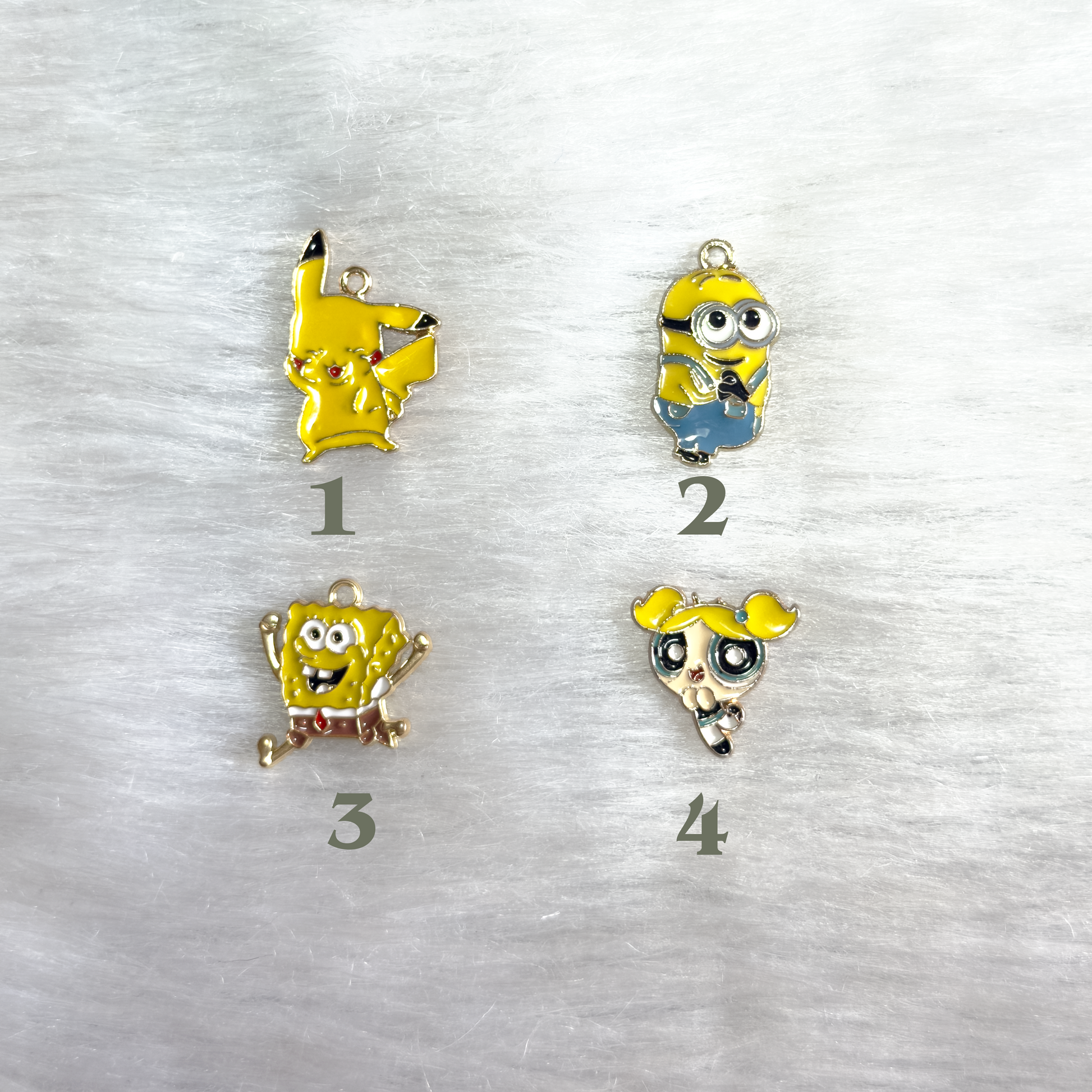 This charm set includes four distinct designs, all shown in the image above.