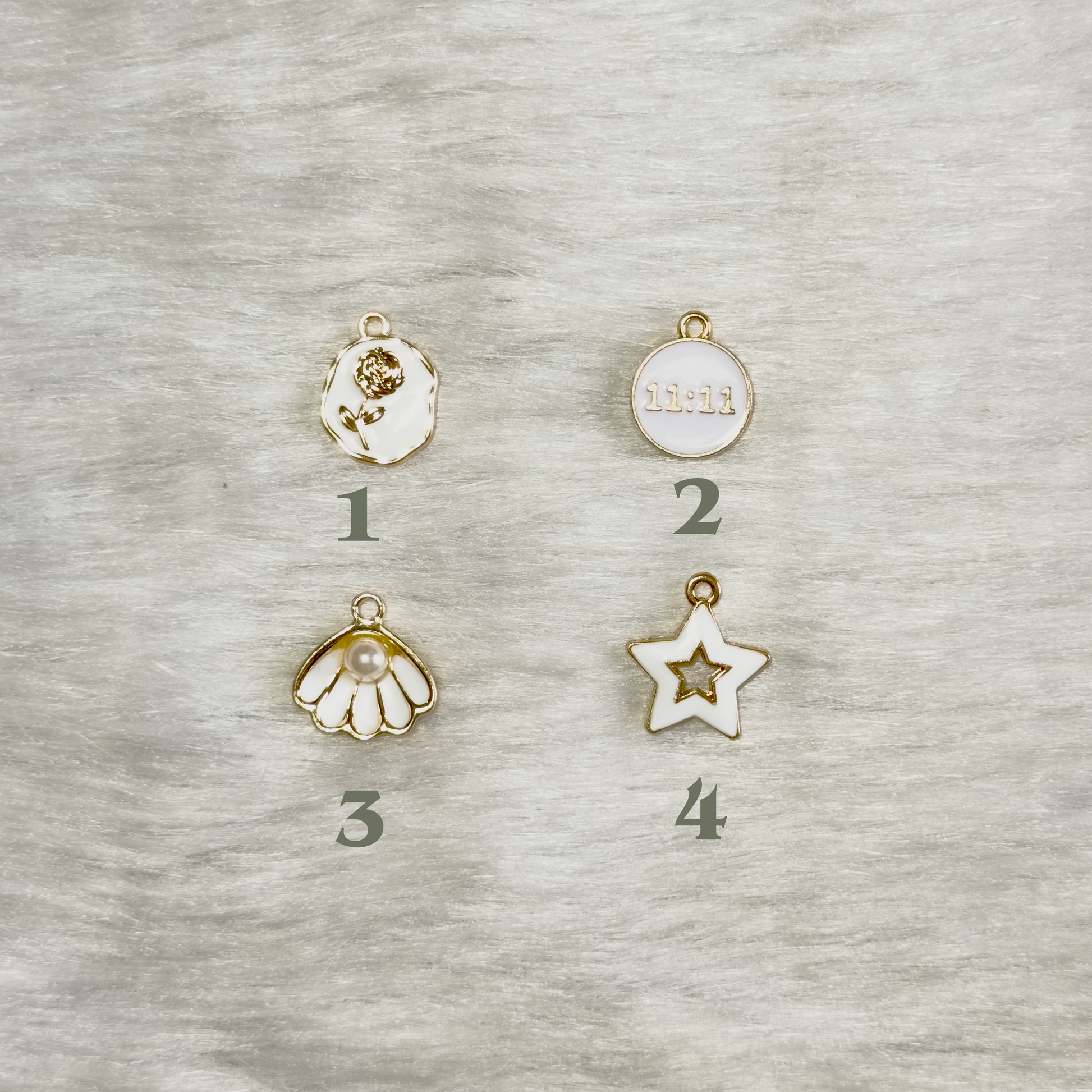 This charm set includes four distinct designs, all shown in the image above.